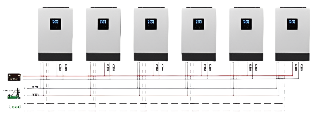 In a single-phase configuration, up to four inverters can be connected in parallel. This setup increases the total output power, making it an ideal solution when higher power is required to support multiple devices. It’s a perfect option for users who need a scalable system that can grow with their increasing energy demands.